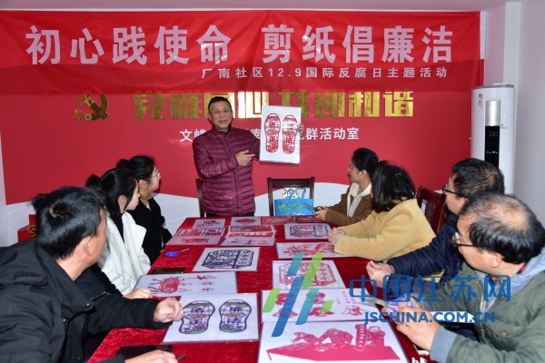 中国江苏网12月8日南通讯 为迎接12.9世界反腐日的到来,12月7日下午,南通市崇川区文峰街道厂南社区党委、监委会、工会联合举办“初心践使命、剪纸倡廉洁”主题活动,邀请文峰街道老干部讲师团成员、社区剪纸达人蒋春昇老师为社区社干开展反腐倡廉主题活动。