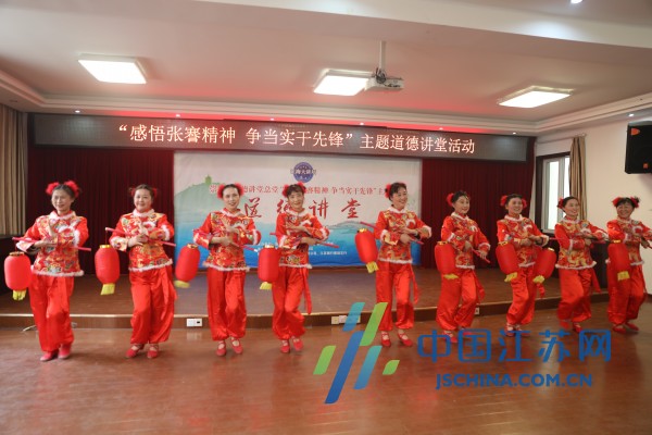 本次活动围绕“张謇精神”主旋律,借助“道德讲堂”的形式,通过欣赏舞蹈《不忘初心》、看视频《童说百年张謇》、听配乐诗朗诵《张謇》、听企业负责人学模范、听青年党员畅谈感悟、接受共建单位江苏银行送吉祥、看舞蹈《红灯笼》等环节,让与会党员群众重温了张謇不断求索、实业救国、奉献社会的伟大历程,引导党员群众以张謇精神为“动力源”,脚踏实地、服务社会,争当实干先锋。