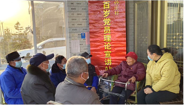 历史因铭记而永恒,精神因传承而不灭。袁庄镇探索“入户学习”新模式,将党史学习教育阵地搬到孙庄村百岁老人徐明家中。这位有着78年党龄的老党员,绘声绘色地给来客讲述抗战年代面临死亡考验的经历,吟唱当年的多首革命歌谣。