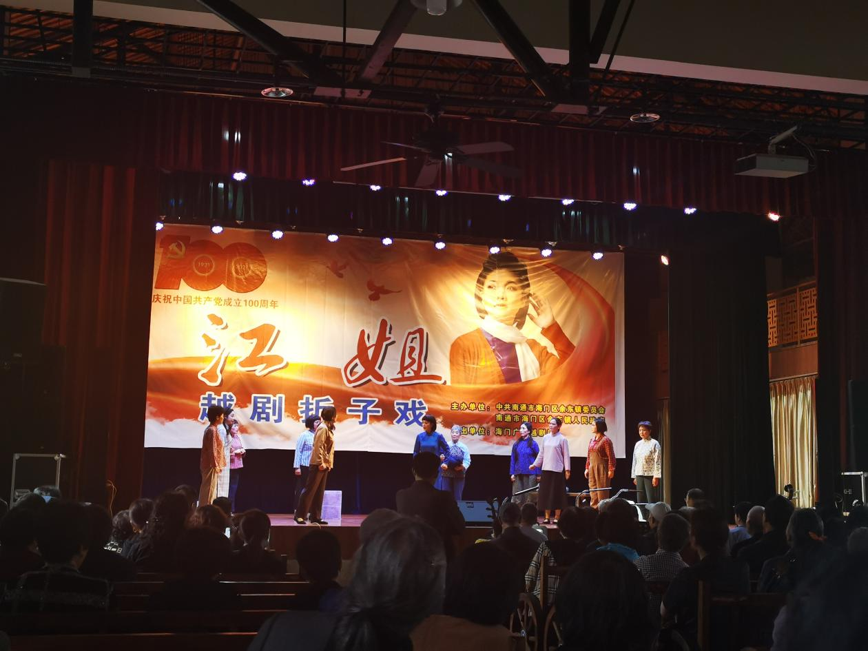 下午两点,演出正式开始,老戏迷们早早占了好位置,年轻的戏曲爱好者也不少,大家看得津津有味,不时用手机记录。民乐合奏《今天是个好日子》拉开了欢腾的序曲,《唱支山歌给党听》《记得当年清水塘》等经典片段在舞台上久久回荡。越剧《江姐》选段——《风吹雨打不低头》更是将演出气氛推向高潮,腔柔韵雅的演唱特色赢得观众们阵阵掌声。来自海门广云越剧团的演员们通过戏曲演唱的形式讲述着一段段红色历史故事,真正让党史知识“动”起来“活”起来,扎实推动党史学习教育深入群众、深入基层、深入人心。