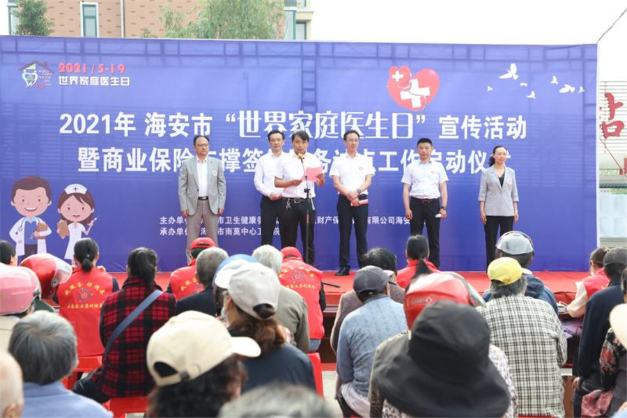 5月19日是第十一个“世界家庭医生日”。上午,“世界家庭医生日”宣传活动在海安市南莫镇如火如荼地开展着。海安市疾控中心专家讲解的“疫情无小事,安全记于心”让在场的每一位居民都将防疫知识铭记于心。活动现场,举办了激烈的健康知识有奖竞答活动。当天,海安市卫健委、人保财险海安支公司、南莫中心卫生院共同开展“家庭医生守护您健康的朋友”主题宣传活动暨商业保险支撑家庭医生签约服务模式创新试点工作启动仪式,南莫中心卫生院与人保财险海安支公司签订了商业保险支撑签约服务全面合作框架协议。