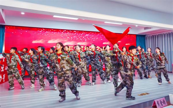 “上天如雄鹰,下海似蛟龙,练就硬本领,筑起新长城。”为传承红色基因,彰显四甲小学少年军校特色,军校少年带来了表演唱《少年军校之歌》,用最真挚的情感表达对党、对国家、对军队的热爱。