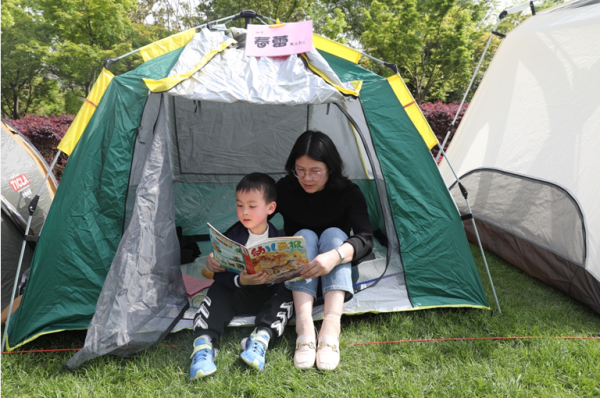 中国江苏网4月19日南通讯 “春光美如斯,正是读书时,亲子家庭一起漫步书香丛林,吮吸知识的甘霖,阅无止境的旅程,重温简单与美好。”近日,在南通市崇川区新城桥街道组织的帐篷书会上,阅读组织欣欣然亲子俱乐部负责人周玉暄分享道。