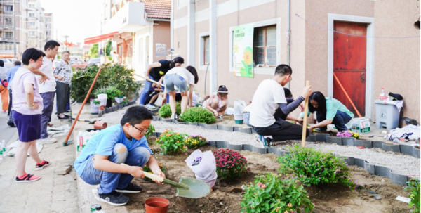 街道链接多方资源,鼓励阅读组织参与承接区街公益创投项目,在项目实施、参与基层治理中壮大阅读组织的力量。欣欣然亲子俱乐部链接南通大学学生力量,实施“微花园、微空间——社区花园空间营造”公益创投项目,并将该项目与“阅读四时之美”阅读项目结合,通过分享阅读美丽风景的文章,鼓励动手制作微景观,发动居民参与社区花园营造等,由阅读出发,在阅读中发现美,从而内生参与花园营造、创造身边的美的动力。“在阅读中发现美,在劳动中创造美,我们用阅读的种子,种出共治的花朵。”参加空间营造的夏睿晗家长说。