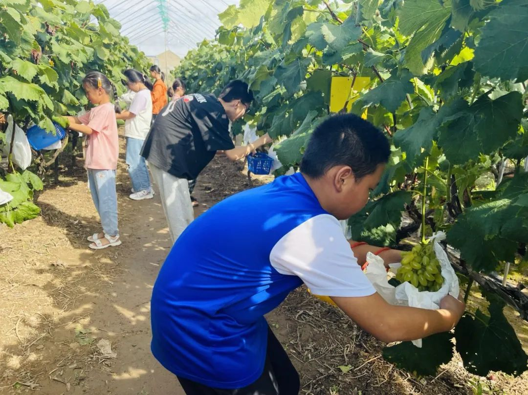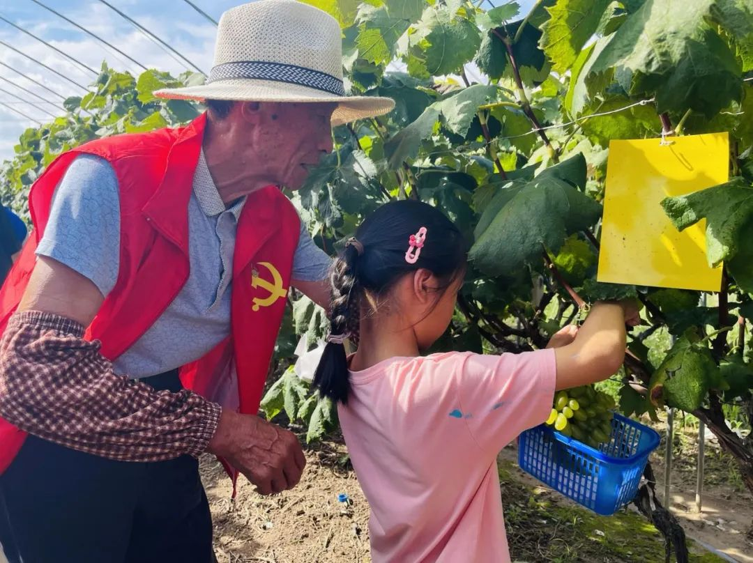 漫步在葡萄园里,抬头随处可见成熟的葡萄,颗颗饱满、粒粒圆润。葡萄架下,志愿者黄奕钢饱含热情,讲述着那些悠远而深刻的红色心灵故事。他面前,坐着一排排小同学,扬着红润小脸,认真聆听并理解其中深意。千言万语化作涓涓细流,伴着脚下黄泥、赤子之心,共同浇筑、巩固乡村振兴的思想基础。