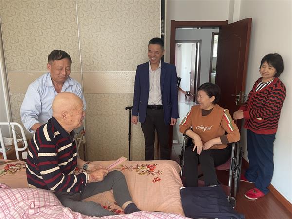 在侨眷陈步法家中,葛主席、顾书记与老人亲切交谈,详细询问他的身体、生活情况,了解是否存在急需解决的困难和问题,并送上慰问金,致以节日问候与祝福。“感谢党和政府的关心,我们深深感受到了侨界大家庭的温暖,最近我腿脚不便,非常感谢社区工作人员常常记挂我们,让我们感觉很暖心,很幸福。”其女儿陈洁表示。
