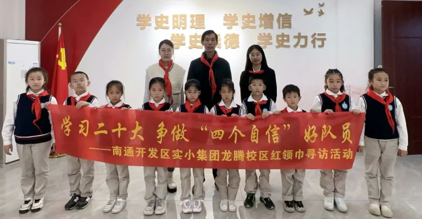 中国江苏网10月17日南通讯 为了进一步学习党的二十大精神,用好红色资源,缅怀革命先烈,传承红色基因,弘扬爱国精神。近日,南通开发区实小集团龙腾校区少先队员走进了开发区瑞兴社区党群服务中心红色文化陈列馆,开展“寻访红色基因”活动,一同追忆红色记忆,探寻中国革命。