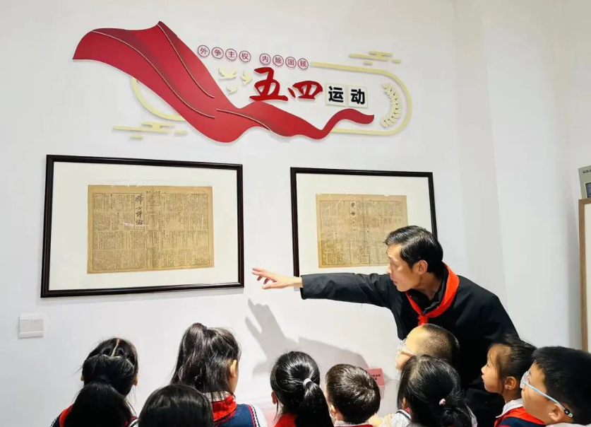在陈列馆内,省红色报刊收藏家王宴老师向少先队员们展示了珍贵的实物和详实的史料。