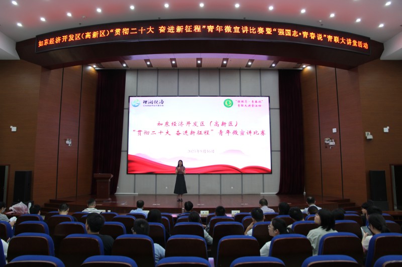 为持续推动党的创新理论在基层走深走实,在活动周期间,如东经济开发区(高新区)邀请社科专家深入机关,举办专题报告会,激励广大干部在全面推进中国式现代化开发区新实践的征程上奋发有为、建功立业。围绕“贯彻二十大 奋进新征程”主题,12名青年选手开展微宣讲比赛,分享成长经历和学习体会,既讲故事又讲道理,阐述了对党的二十大精神的深刻理解,表达了将学习成果转换成干事创业的强大精神力量。