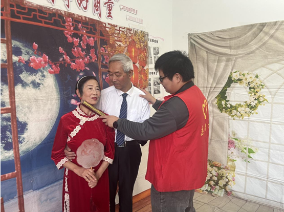 中国江苏网11月27日南通讯 为进一步弘扬尊老爱老的优良传统,逐步推进“学雷锋”志愿服务常态化,11月25日下午,文峰街道凤凰社区新时代文明实践站在团区委的指导下联合中国人像摄影学会志愿队为辖区老人拍摄婚纱照,用镜头记录下他们灿烂的笑容。