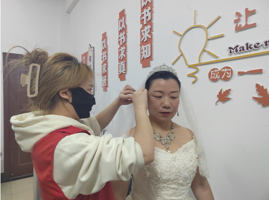 活动当天,一对对相伴数十载的夫妇满怀期待地陆续来到社区新时代文明实践站。志愿者为老人们化妆、更换婚纱后,在一阵清脆的相机快门声中,为他们记录了幸福的瞬间。老人们在摄影过程中重温了他们的情感经历,整个活动现场洋溢着幸福的氛围,旁观的居民都被这快乐幸福的时刻所感染。