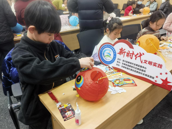 活动伊始,志愿者为青少年介绍了花灯的起源和历史,加深了青少年对汉族传统民俗工艺品的认知。随后,大家三五成群围坐桌旁,手持剪刀和彩纸,在老师的指导下认真地折叠、裁剪、粘贴,不一会儿,一个个形态各异、色彩斑斓的花灯就呈现在大家眼前。看着自己亲手制作的灯笼,孩子们的脸上洋溢着自豪和喜悦的笑容。“这次活动非常有意义,我不仅学会了灯笼的制作方法,还对中华传统文化多了一份责任感和使命感。”汪梓伊小朋友分享了自己的心得体会。