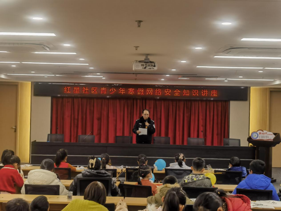 为让青少年们度过一个安全愉快的寒假,红星社区民警唐绍华以“欢乐过寒假,安全不放假”为题,进行网络安全教育主题讲座。唐警官用通俗易懂的语言,融入日常生活中的真实案例,向青少年介绍电信网络诈骗当中的各种“骗术”,提醒大家上网时提高警惕,不要轻易泄露个人信息。现场的青少年家长也参与聆听,进一步提高了全民识骗、防骗、拒骗的能力。