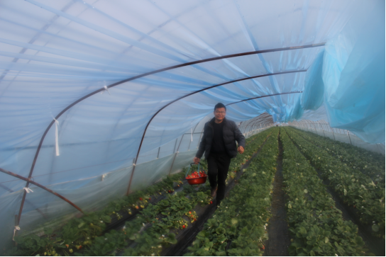 红艳草莓园的大棚里,许帅行夫妇正忙着摘草莓。“我们来南通15年了,在永安村租大棚种草莓也有4年了。”许帅行租赁了7个大棚,占地近10亩,种植奶油、红颜、黑珍珠等六七个草莓品种。“今年春节,有不少超市、水果店正常营业,一些饭店也预订了草莓。生意挺好,今年我们就不回徐州老家了。”许帅行说道。