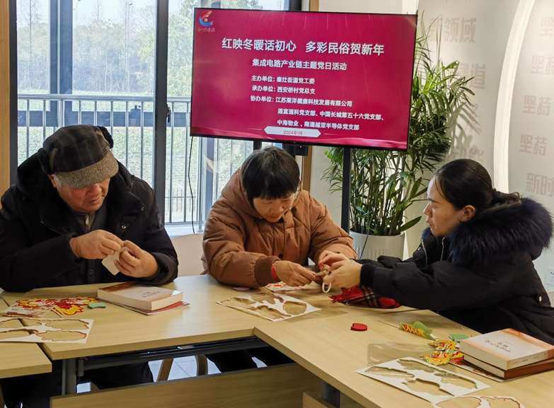为丰富企业党员职工文化生活,提升大家对传统民俗文化的认识,了解中国龙在中华文化中的象征意义,西安桥村党总支开展了“红映冬暖话初心 多彩民俗贺新年”活动。在村志愿者的讲解下,党员们小心翼翼地抠图、粘贴、连接……不一会儿,形态各异、色彩缤纷的拉花纸龙便呈现出来。“因企业需要今年没有回家过年,但参加了秦灶街道在公寓组织的几场暖春活动,做了手工、猜了题、领了奖,很是欢乐,通过活动还结交了几个公寓小伙伴,这也让我对南通有了更深的归属感。”家住黑龙江小沈激动地说道。