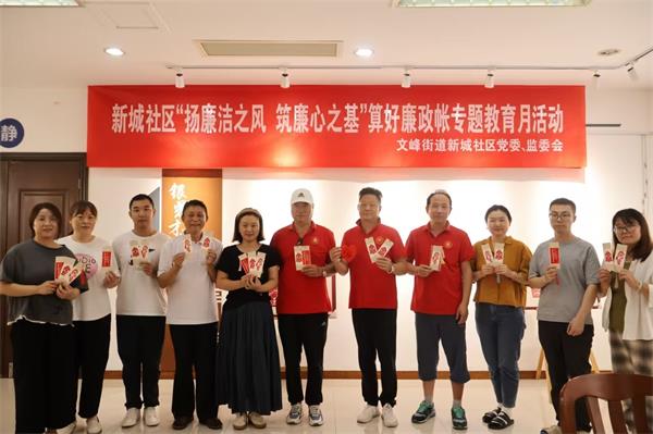 中国江苏网讯 9月10日下午,文峰街道新城社区党委、监委会精心组织开展了“扬廉洁之风 筑廉心之基”——“算好廉政账”专题活动,以独特创新的方式推动新时代廉洁文化建设。