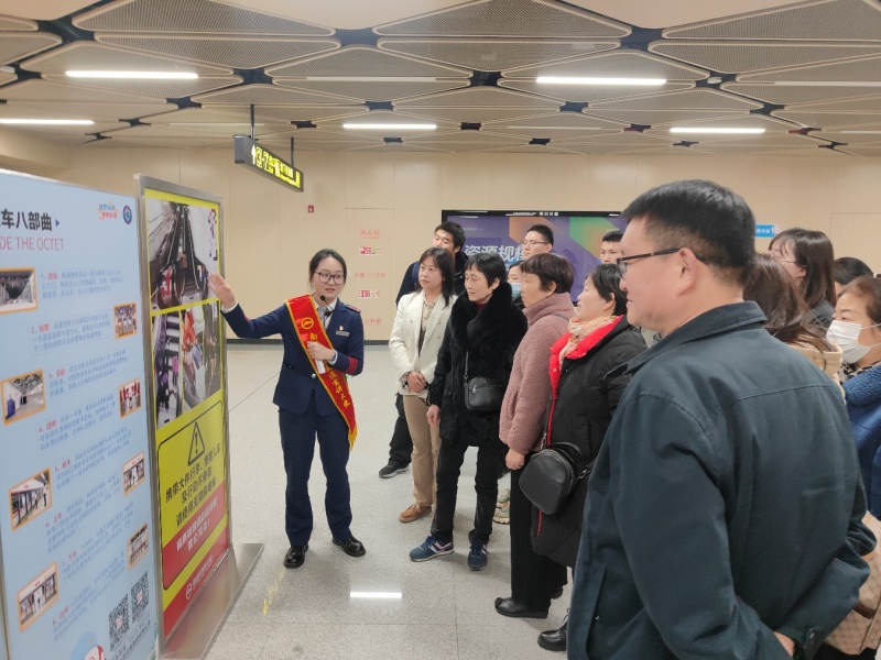 在钟秀西路站,跟随车站工作人员马潇的讲解,大家参观了车站内专门为乘客、周边居民和户外劳动者打造的便民空间“绿途小栈”,聆听地铁出行安全知识,了解车厢内的安全设施及注意事项。行至体育公园站,车站工作人员商乐向大家介绍了站点特色,南通市公安局交警支队一大队五中队尤明队长开展了交通安全知识宣传,“文明实践推荐官”、新城桥街道启秀社区工作人员黄旭发出交通安全倡议,大家在活动宣传墙上郑重签名,共同承诺遵守交通安全规定,为构建文明交通环境贡献自己的力量。