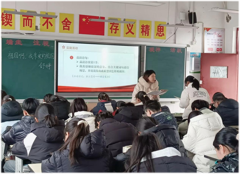 活动围绕“优师·优教·优学”主题,深度推广相关研究成果。开场,九华初级中学的薛丽老师和白蒲初级中学的纪佳丽老师分别展示《轻重缓急出意境 抑扬顿挫显真情》和《祖国啊,我亲爱的祖国》示范课。她们以深厚专业素养和丰富教学经验,将教育理念融入课堂,让学生在提升文化素养中树立文化自信。
