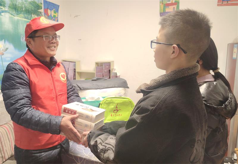 3月16日中午,吉坝乡连爱心协会会长殷建峰特地为镇巴县泾洋街道困境家庭的张同学送来他心心念念的中国古典文学四大名著。
