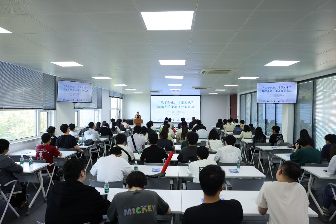 活动当天,高校学子们参观了河口镇新区的公立医院、幼儿园、人才之家等配套设施,深入了解了如东县的人才发展环境。同学们先后走进中天电力光缆车间、中天电气技术车间和江东金具电力实验室,通过实地观摩光纤产品精密制造、智能制造生产线以及前沿电力设备研发过程,切身感受如东制造业的蓬勃活力。之后的活动中,在中天科技学院,如东县委组织部副部长、人才办主任朱爱梅详细介绍了如东县的人才政策,河口镇组织委员李常亮对河口镇的产业发展和区位优势进行了重点推介。中天科技集团技术负责人及人力资源团队现场分享了企业的人才需求与福利待遇,为学子们提供了清晰的职业发展路径。