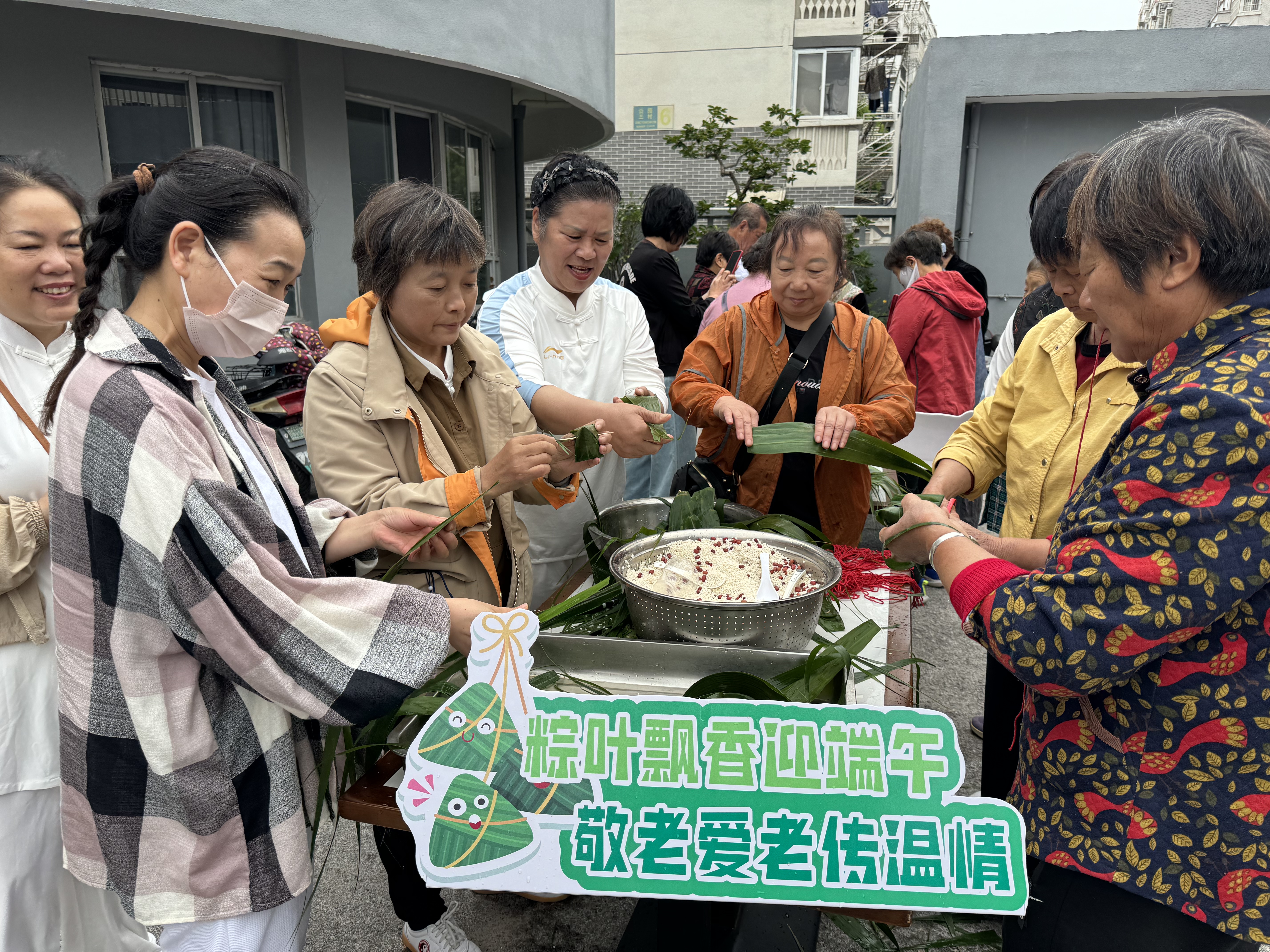 中国江苏网5月29日南通讯 5月28日,南通市崇川区唐闸镇街道新时代文明实践所、新园社区、公园社区、碧林湾社区新时代文明实践站联合大生护理院,在公园三村小院举办“粽叶飘香迎端午,敬老爱老传温情”主题活动。社区党员、退役军人代表、志愿者及老年大学学员齐聚一堂,通过包粽子、义诊服务、文艺表演等形式,传承端午文化,弘扬敬老新风。
