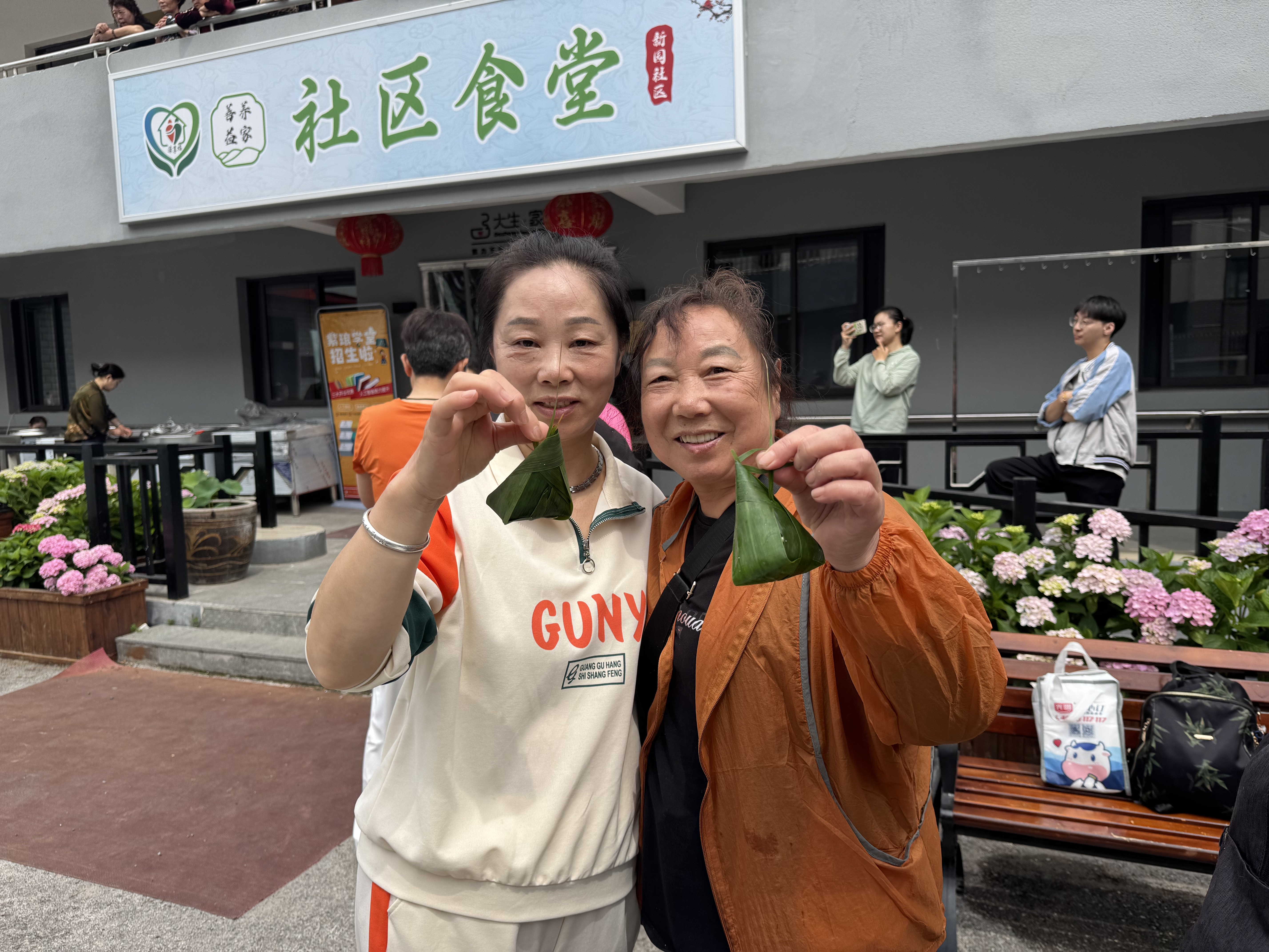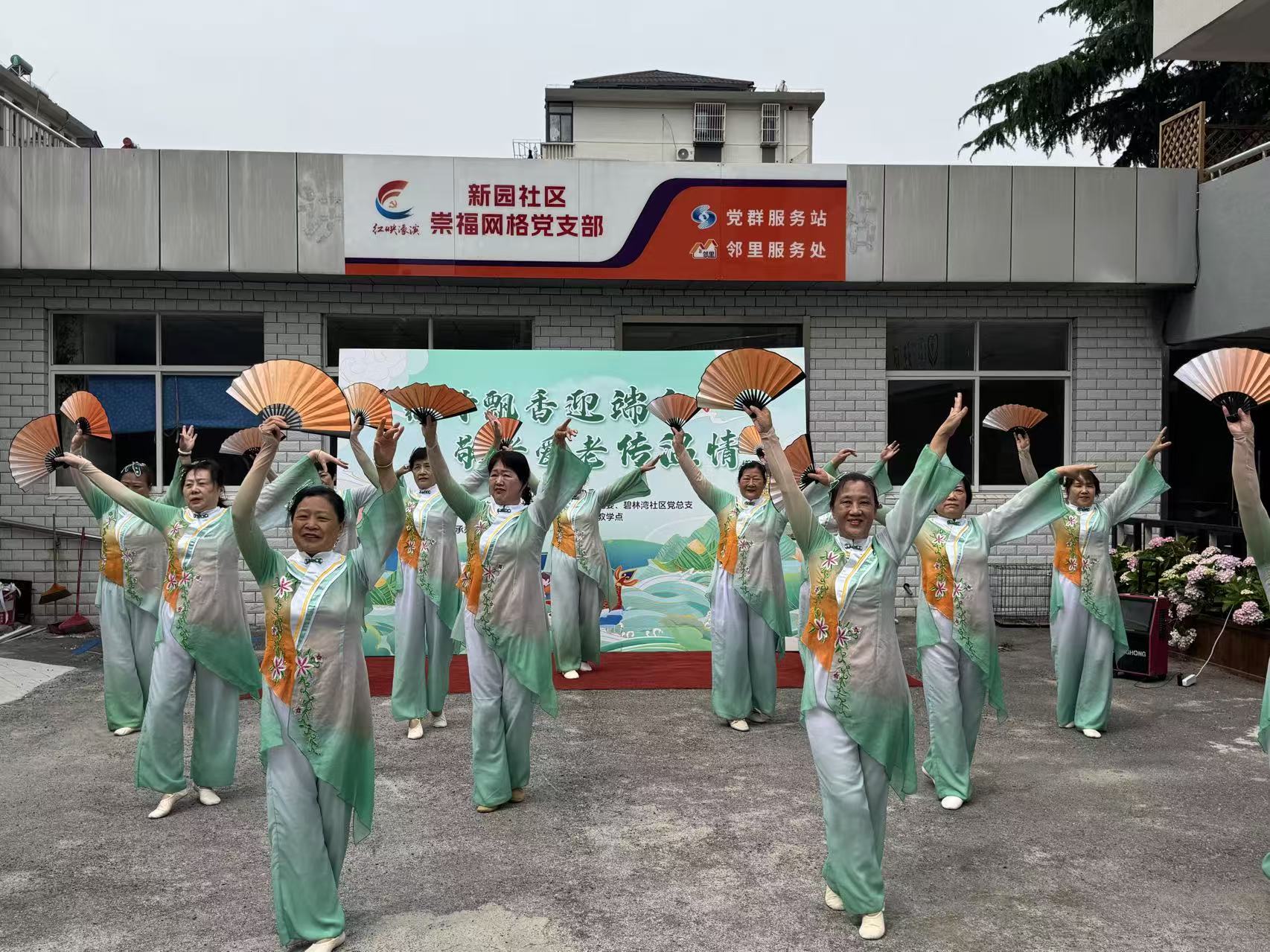 现场另一侧的包粽子区域热闹非凡,20名志愿者与老年居民协作,折叶、填米、扎绳,动作娴熟。年轻志愿者虚心请教,老年居民耐心指导,欢声笑语中传递着代际温情。崇川区老年大学学员带来八段锦表演,动作整齐舒展;歌舞节目《茉莉花》旋律悠扬,舞姿轻盈,赢得观众阵阵掌声。
