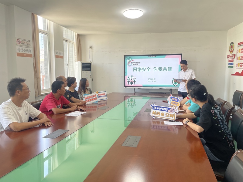 中国江苏网讯 为筑牢基层网络安全防线,强化企业网络安全防护能力,9月16日上午,文峰街道厂南社区开展“网络安全 你我共建”2025年网络安全宣传周活动。此次活动旨在提升辖区居民、企业负责人对网络风险的防范意识,引导大家正确使用网络,远离网络陷阱,共同打造清朗的网络空间。