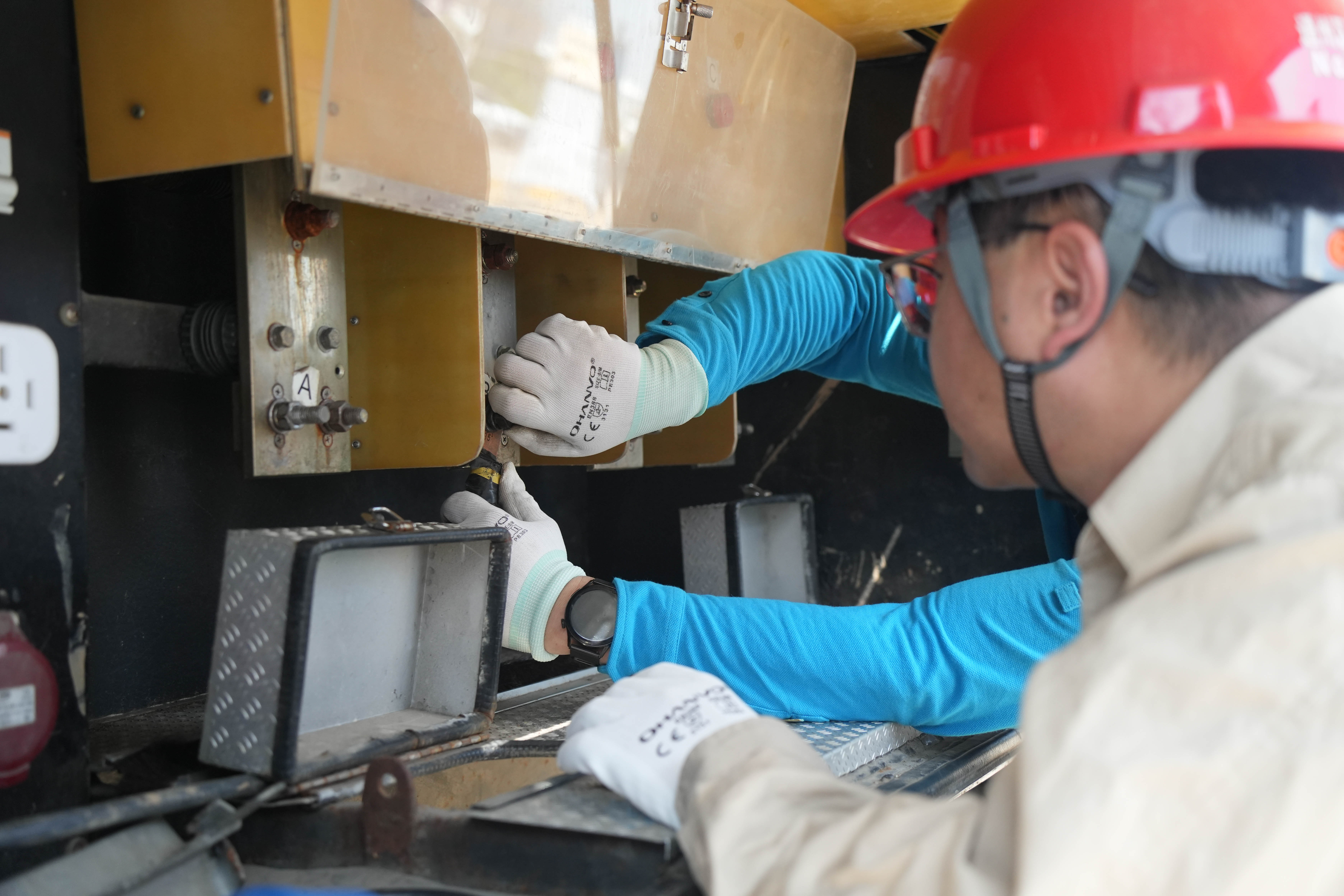 很快,该公司一台400千瓦的应急电源车以及宋飞、徐明宏和张骞等应急保障人员就位。大家在做好安全措施的条件下,迅速安全隔离“市电”。紧接着,从应急电源车上抽放电缆线,将电缆接口迅速接驳好,并迅速启动应急电源,确保配电中心安全供电。