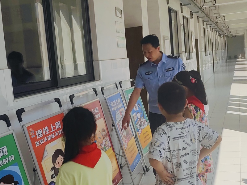 活动中,派出所民警充分结合小学生的认知特点,精心设计了多元且生动的宣讲形式,通过清晰直观的PPT讲解,将网络诈骗的常见手段、识别技巧层层剖析;通过内容丰富的宣传板展示,把个人信息保护的要点直观呈现;再以趣味十足的互动问答,调动起学生们的热情参与。民警用通俗易懂的语言,详细讲解了如何辨别网络诈骗陷阱,比如遇到“免费游戏皮肤”“中奖通知”等诈骗套路时该如何应对。此外,还着重引导学生们树立正确的网络使用观念。针对小学生易沉迷网络游戏的特点,以真实案例为引,耐心讲解沉迷游戏对学习和生活的负面影响,鼓励大家合理安排上网时间,让网络成为学习知识、拓展视野的工具,而非成长路上的绊脚石。