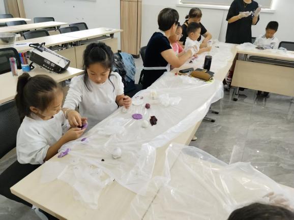 月饼作为中秋节的节令食品,自古以来就象征着团圆和美好祝愿。冰皮月饼制作环节中,志愿者首先向大家详细介绍了制作冰皮月饼的步骤和技巧,并现场进行了示范。孩子们洗净双手,迫不及待地开始操作。大家将面团分成小剂子压扁,包入馅料,揉成光滑小球,然后放入模具中压制。经过一番努力,一个个形态各异、色彩丰富的冰皮月饼在孩子们手中诞生了,月饼上印上了月亮、桂树、兔子等图案,寓意团圆和美好。