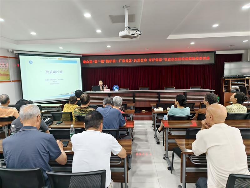 讲座现场,周医生结合临床经验,用通俗语言从骨质疏松症的病因、症状、危害及高发人群展开讲解。她表示,中老年人骨量流失加快,女性绝经后与男性70岁以上为高发群体,而独居老人因缺乏照顾更易忽视骨骼健康。预防环节,她从饮食、运动、生活习惯等方面给出建议,推荐多摄入富含钙和维生素D的食物以促进钙吸收。
