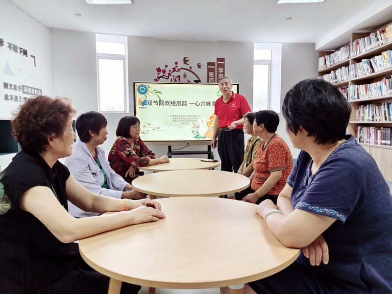 活动室内暖意融融,一张长桌铺展开素白底坯的团扇、五彩斑斓的彩纸,以及各式充满中秋韵味的纸板配件:灵动的玉兔、圆润的月饼、飘逸的祥云,琳琅满目,静候巧手点染。在志愿者细致的引导下,居民们纷纷动手,精心剪裁、耐心拼贴、巧妙构图,将皎洁的明月、玲珑的玉兔、盛放的桂花与饱满的月饼等意象,一一融于扇面之上。每一把团扇,都成为承载佳节祝福与个人巧思的独特作品。“做了把兔儿扇,回去带给孙女玩,她一定很喜欢。”王奶奶举着自己亲手完成的团扇,笑意盈盈地说道。小小团扇,不仅凝聚了中秋的传统意蕴,更绘就了一幅家国同心的温馨画卷。