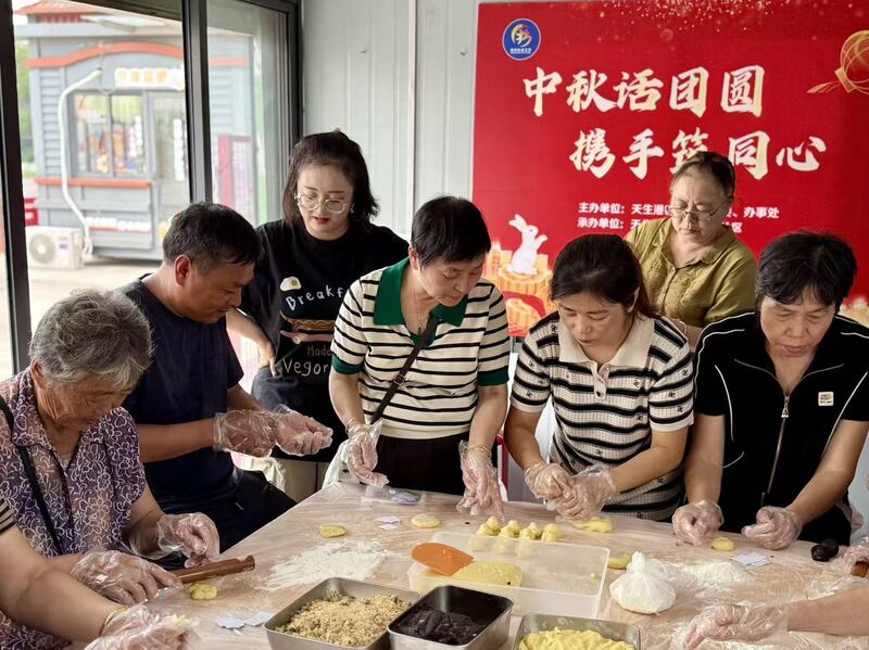 “揉面要均匀,包馅时注意手法,这样烤出来的月饼才好看又好吃。”烘焙达人现场示范月饼制作步骤,手把手指导参与者操作。快递小哥张宇手上沾着面粉,却笑得格外开心:“平时忙着跑单,连陪家人吃顿团圆饭都难,今天亲手做月饼,才算真正有了中秋的感觉。”大家专注地擀皮、包馅、压模,不一会儿,一个个造型精致的月饼雏形便呈现出来。手工制作的过程中,陌生的群体逐渐熟络,节日的温情在指尖流转。