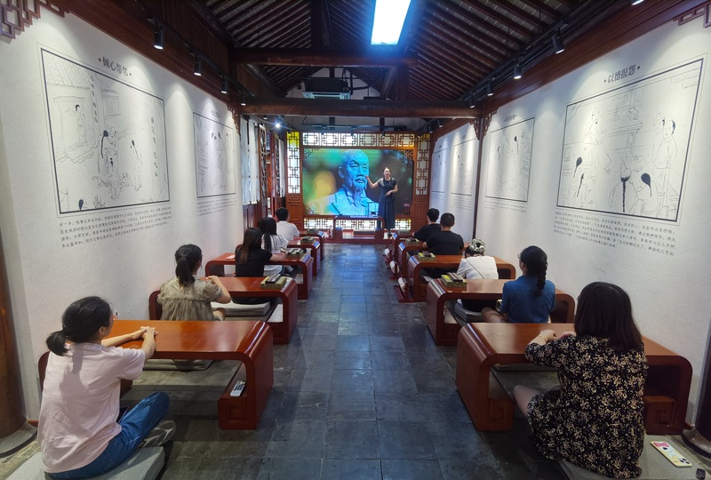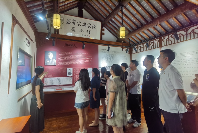 观“风之源”悟“初心账”,在溯源中强化政治自觉。在“青骑兵”的引导下,党员们依次参观“风之源”“风之化”“风之衍”三大展厅。在“风之源”展厅,“家诫石”前的集体驻足学习成为活动“第一课堂”。“青骑兵”领学张謇《家诫》中“以廉为基、以勤为本”的核心要义,结合“实业救国不忘清廉本色”的生平事迹,带领党员算好“政治账”。展馆内“廉石”“拒贿信”等实物复刻场景,让主题党日的“现场教学”更具感染力,党员们在“看、听、思”中深刻感悟“家风连着政风,家事关乎政事”的深刻内涵。