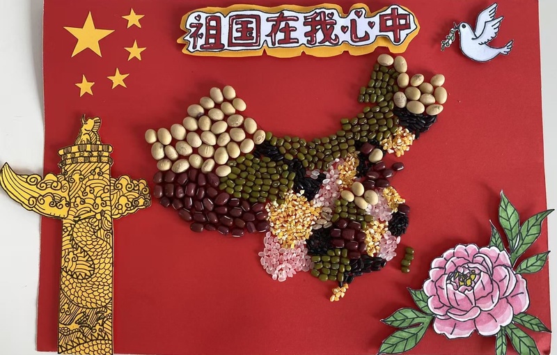 假期里,学生们以五谷杂粮拼贴中国地图。他们用红豆、绿豆、黑米等不同颜色的杂粮,专注勾勒地图轮廓、填充细节,有的标注疆域边界,有的表现地形纹理。普通五谷在巧手下变成立体中国地图。