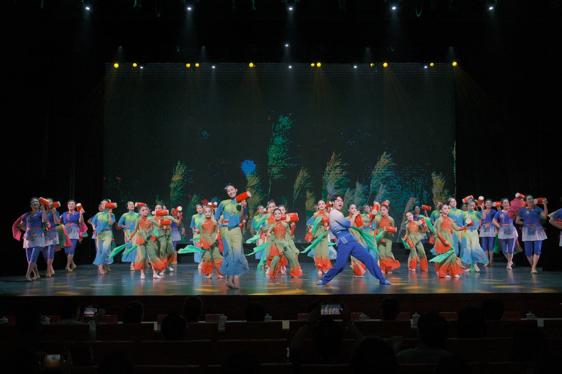 舞台上,鼓点跃动、舞步飞扬。从鬓染霜雪的老艺人到稚气未脱的少年,四代传承人携手献上《海安花鼓》精彩片段。翻飞的红绸与铿锵鼓韵交织,彰显着这项非遗技艺绵延不绝的蓬勃生命力,这场跨越代际的艺术对话,生动展现出海安花鼓生生不息的传承力量。