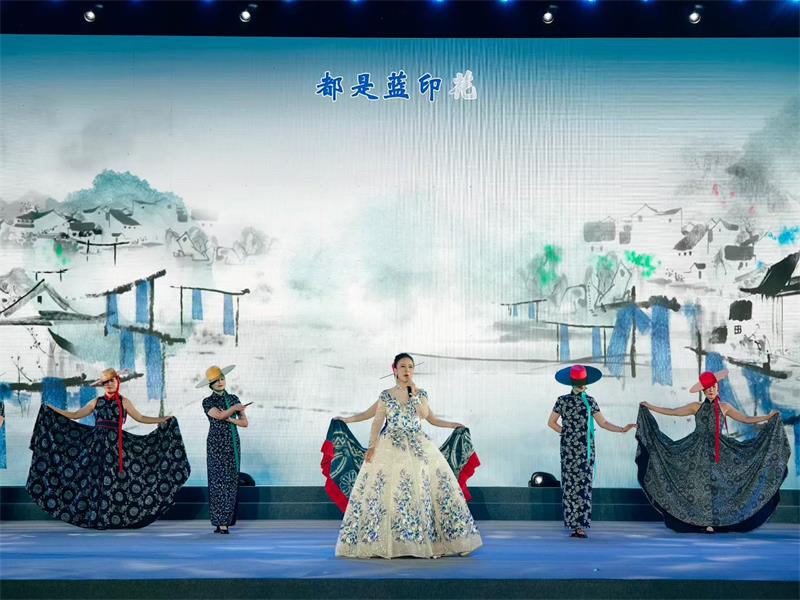 天生港号子的苍劲与省级非遗陆家锣鼓的激昂率先点燃现场气氛,观众瞬间被带入热烈氛围。以“四季”为题的现场拉歌环节,熟悉的歌曲旋律引发观众共鸣,不少人跟着哼唱。歌曲与服饰表演《蓝印花》创意满满,让非遗在悠扬歌声中“活”起来。南通锄箫与民乐团的创新合奏,诉说着农耕岁月的变迁,令人耳目一新。