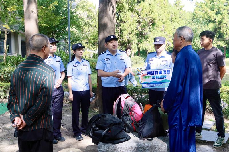 活动现场,民警们分组行动,各司其职。咨询组耐心解答群众疑问,流动组穿梭在各展馆间主动提醒开展打谣宣传、反邪教宣传等系列活动,并指导游客下载国家反诈中心APP。针对不同群体,民警开展精准宣传:对老年游客重点讲解“养老理财”诈骗,对青少年群体剖析“游戏装备交易”陷阱,对外地游客提醒防范“旅游消费”欺诈。