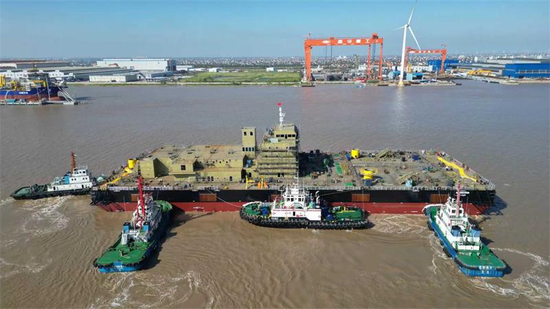 中国江苏网讯 10月11日,在南通海事局全程监管维护下,上海振华重工集团为迪拜干船坞世界公司(Drydocks World)建造的5000吨固定臂膀起重船在振华启东海工顺利吉水。
