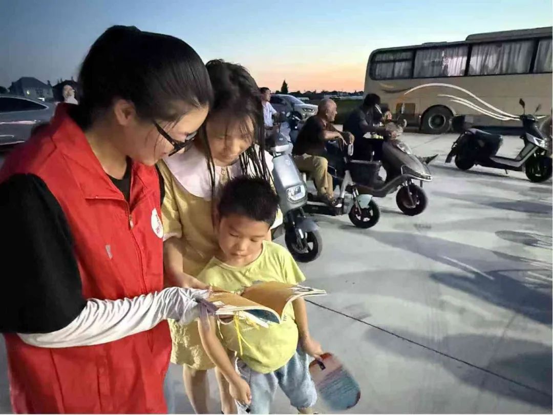 在演出间隙,法治宣传和全民阅读活动环节也成为一大亮点。龙坝村志愿者们向现场村民发放了宣传资料,内容涵盖预防电信网络诈骗、反邪教知识、“扫黄打非”等相关知识。耐心解答群众关心的土地承包、婚姻家庭、邻里纠纷等法律问题,助力群众尊法学法守法用法,进一步提高了村民知法守信的法治意识。同时,在戏台一旁的“书香龙坝”宣传区,志愿者们热情地向村民推荐一系列适合不同年龄段阅读的书籍,准备了书签等小礼品,让大家在看戏间隙轻松了解阅读活动,激发读书兴趣。小朋友依偎在姐姐身边听着志愿者介绍绘本,害羞地说:“姐姐,以后周末我能到你们那边看更多的书吗?这样爸爸妈妈就不用担心我老是看手机了。”
