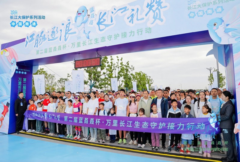 中国江苏网讯 10月19日,2025第二届“蓝叒叒杯”万里长江生态守护接力行动南通站在苏锡通园区苏通乐园举行。1000多名跑者齐聚江畔,以奔跑的方式守护长江生态,传递绿色理念。