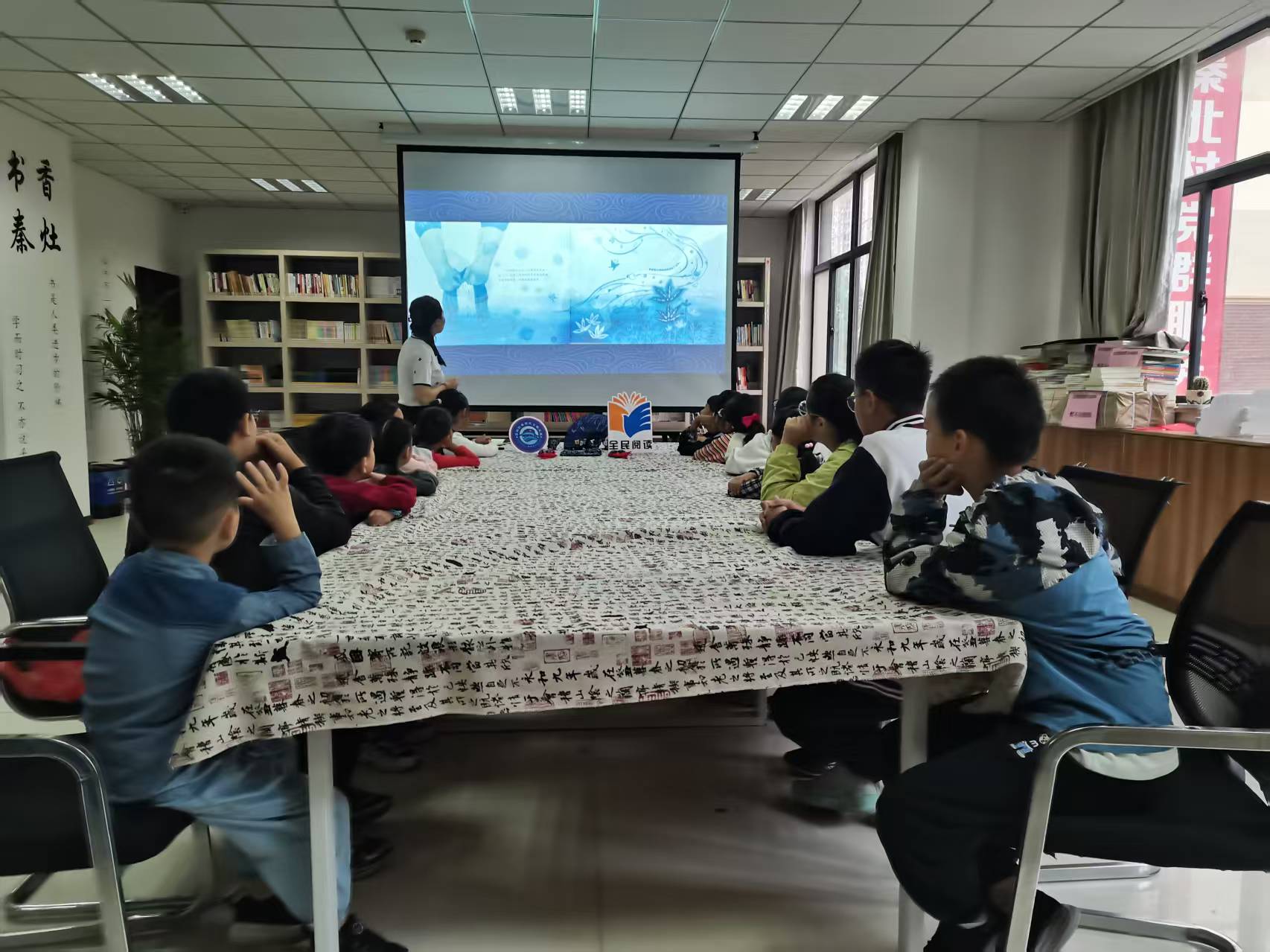 活动伊始,秦北村非遗志愿者结合图文展板,系统讲解了蓝印花布的历史渊源与制作流程。从油纸刻版的纹样设计到蓝靛染料的染色技巧,志愿者的讲解深入浅出,将复杂的传统技艺转化为孩子们易于理解的知识。随后,志愿者向大家展示了“喜上眉梢”“年年有余”“福寿双全”等经典蓝印花布纹样作品,并解读其中的民俗文化内涵,让孩子们直观感受传统纹样的艺术价值与人文寓意,孩子们听得津津有味,不时发出惊叹。