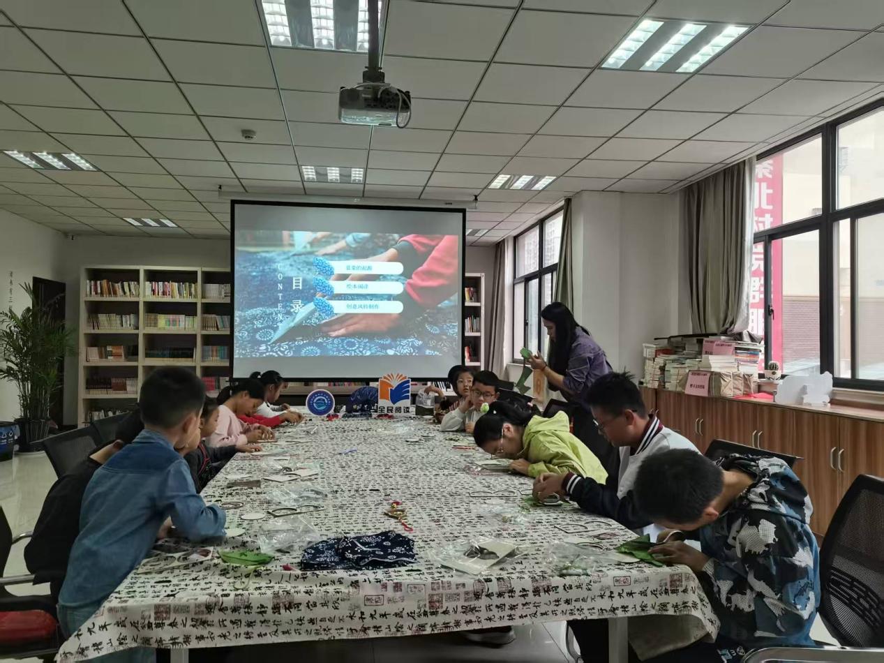 最令人期待的创造环节将整个活动推向高潮,孩子们在志愿者的帮助下,自主选择不同纹样的蓝印花布片,通过裁剪、穿线、固定等步骤,制作蓝印花布风铃。手工制作过程中,孩子们充分发挥想象力,有的将花鸟纹与几何纹组合,有的搭配不同尺寸的布片设计层次感,志愿者则针对裁剪技巧、绳结固定等细节问题提供一对一指导。经过近一小时的手工创作,一个个造型独特、蓝白相间的风铃相继完成,孩子们轻轻晃动风铃,清脆的响声与蓝印花布的质朴美感相得益彰。