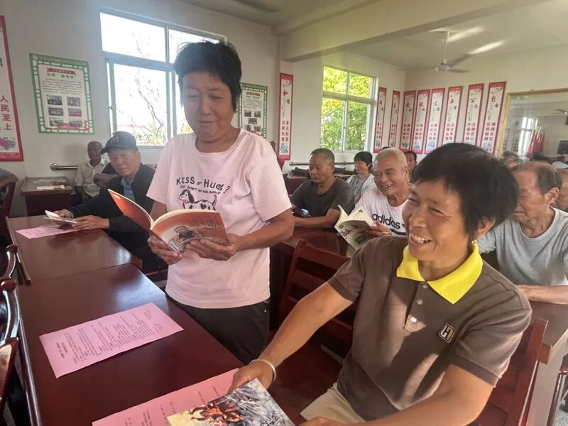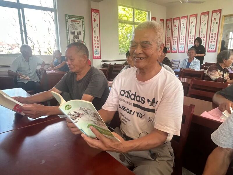 自由分享环节中,村民们的阅读内容丰富多彩。有人手捧《中国农史讲话》探寻农耕文明智慧,有人翻阅《红旗漫卷乡村》回顾奋斗岁月,也有人沉浸于《稻花香里说丰年》品味现代农业成果……一本本书籍在手中传递,一段段感悟在交流中升华。平日忙碌于田间地头的乡亲,此刻化身为专注的读者与真诚的分享者,在书香中共话丰收背后的辛勤与喜悦。