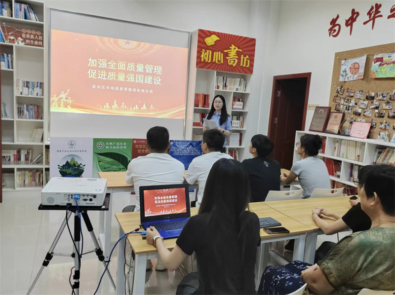 农家书屋也成为了宣讲的重要阵地。通州区市场监督管理局先锋分局的青年理论宣讲员,围绕《加强全面质量管理 促进质量强国建设》这一主题展开宣讲。为了让专业概念通俗易懂,宣讲员从日常消费品质量、乡村产业发展等村民熟悉的场景入手,讲解全面质量对中国式现代化的重要作用。从农产品品质提升增加村民收入,到产业链质量管控助力国家经济高质量发展,“质量强国”不再是抽象的理论,而是变得可感可知。