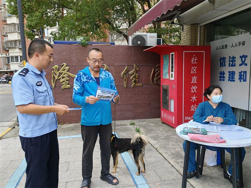 中国江苏网讯 近日,崇川分局天生港派出所与隆兴佳园城管工作站携手,在工作站周边搭建宣传阵地,开展“依法养犬、文明相伴”主题活动,为居民送上养犬法规与文明理念。