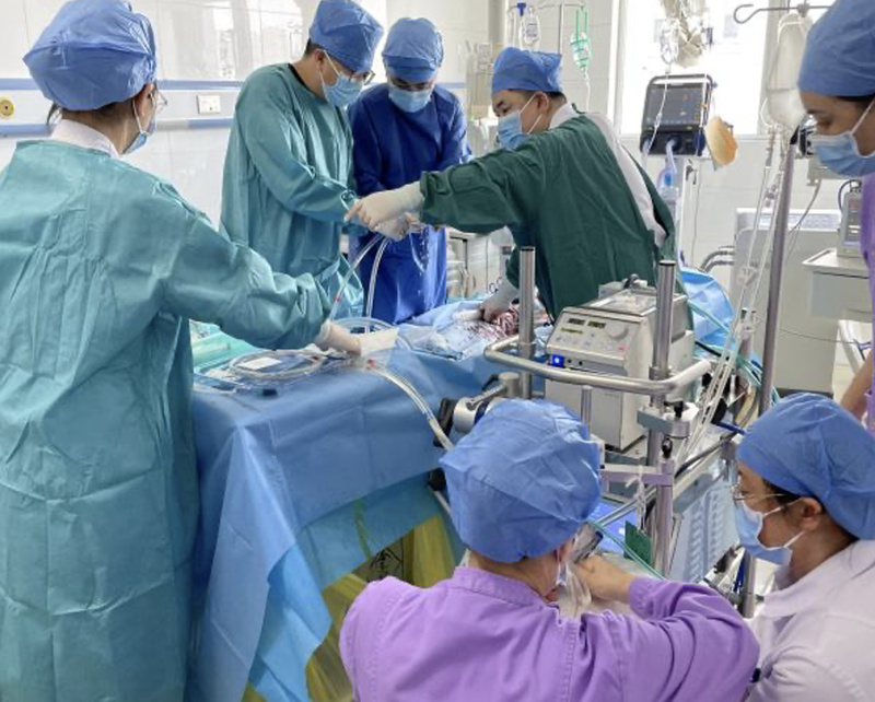 医院赶紧召集多个科室医生一起会诊,最终决定用俗称“人工心肺”的 VA-ECMO技术救他。征得家属同意后,ECMO 团队立刻行动:护士快速准备好设备、接好管路,医生在床边紧急插管。当暗红色的血经过 ECMO 氧化变成鲜红色,再输回丁大爷体内时,他的血压慢慢稳住了,各项生命体征也趋于平稳,整个过程才用了40 分钟。