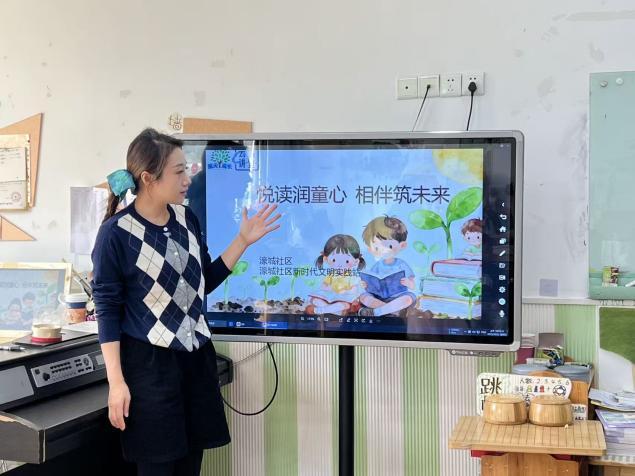 活动开始,“指尖成长·云端讲堂”的屏幕上,“悦读润童心,相伴筑未来”的主题海报格外醒目。画面中,孩子们在书籍与幼苗的环绕下阅读的温馨场景,瞬间点燃了现场的氛围。社区新时代文明实践站的志愿者以生动绘本故事为引,向参与的老师和孩子细致解读“护苗”内涵,用童趣语言阐释“小种子生长需阳光雨露,小朋友成长离不开优质读物滋养”,引导孩子们辨别有益读物、远离不良信息,在书香沃土中扎稳成长根基。
