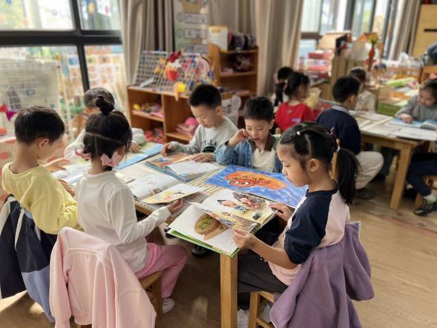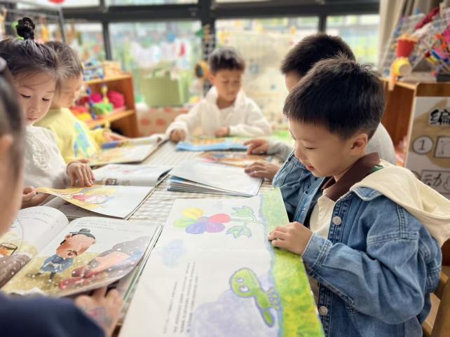 现场阅读角经精心布置,木质桌椅搭配琳琅满目的绘本,构建出满是童真的品阅天地。孩子们或围坐成圈,凝神聆听志愿者讲述《小鼹鼠的阅读之旅》;或两两结伴,专注翻阅《发明家奇奇兔》《亲爱的动物园》等绘本,遇到趣味情节时,便小声与同伴、志愿者分享感悟。“你看这只兔子发明的雨伞好特别!”一名小女孩指着绘本画面,眼中满是惊喜,向身旁志愿者诉说发现,共读时光里满是温情与欢声笑语。