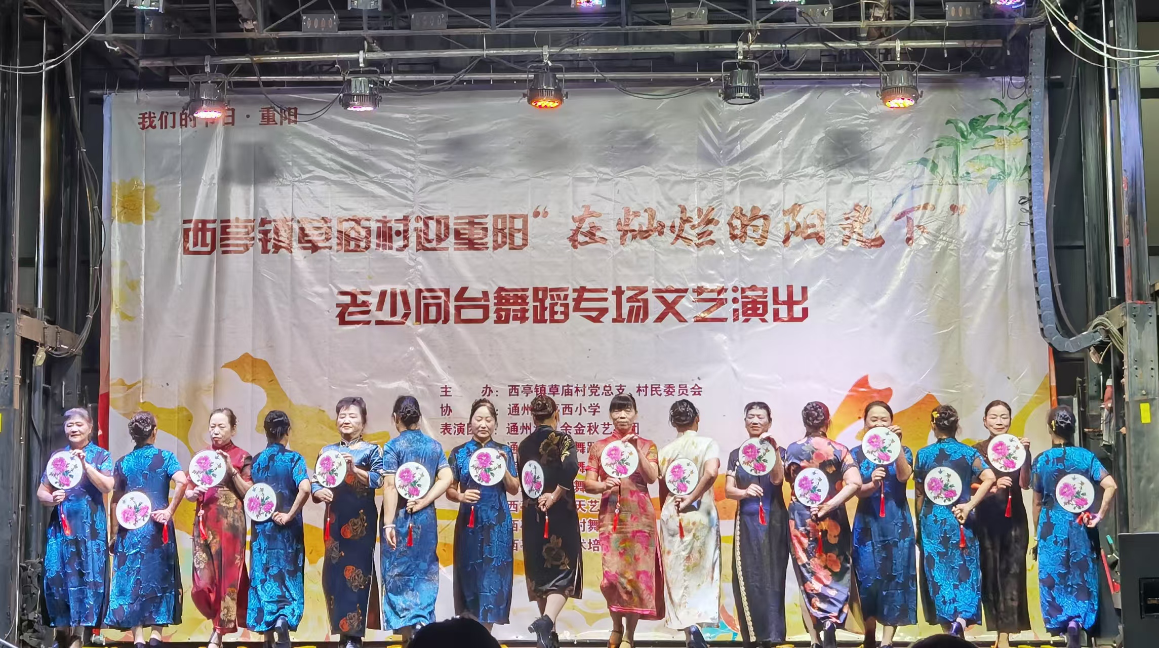 中国江苏网讯 金秋送爽,丹桂飘香,在重阳佳节来临之际,一场以“老少同台”为核心亮点的舞蹈专场联欢晚会于10月26日在草庙村党群服务中心温情启幕。晚会以“我们的生活充满阳光”为主题,汇聚了三余金秋艺术团、西亭镇艳阳天艺术团,环本、东余、海晏、草庙村的舞蹈队以及西亭择萱艺术培训的表演者们,用灵动的舞姿串联起岁月的故事,让银发智慧与童真活力在舞台上碰撞出动人的火花。
